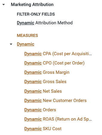 In the Marketing Attribution explore, there is a set of "Dynamic" fields: