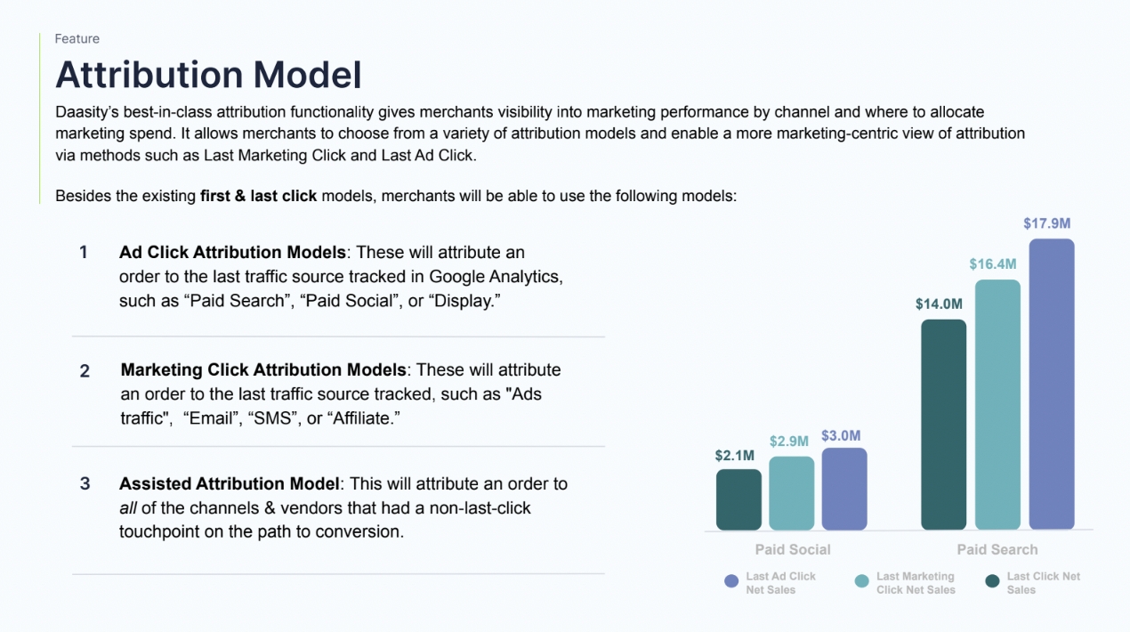 Last Marketing Click — Attributes credit to the last marketing channel the user interacted with before making a purchase. i.e Ads Traffic, Email SMS or Affiliate.