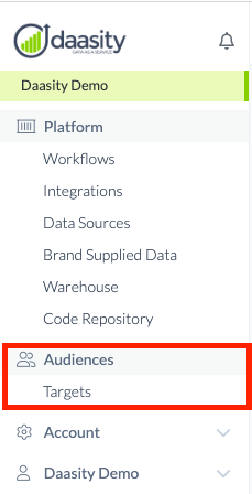 Audiences are built within your targets. To access your targets, navigate to the Targets page from the left-hand nav: