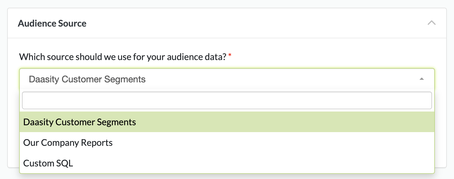 In each method, Daasity will run the report or SQL query on your database in real-time to extract the most current customer list and associated data. The platform then takes the returned data from that query, maps it to the appropriate fields in the target, and sends the data to the target.