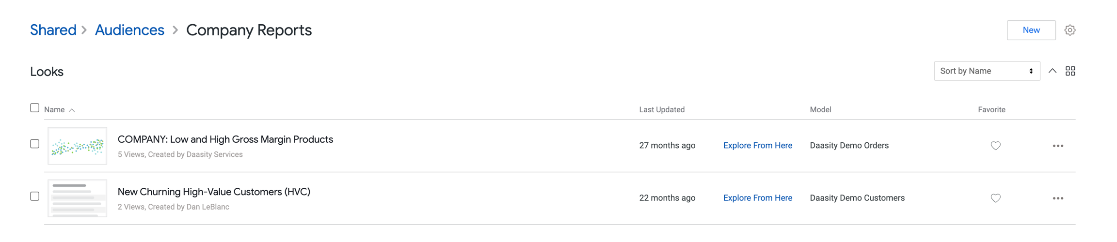 Our Company Reports — Use a report you have created in Looker