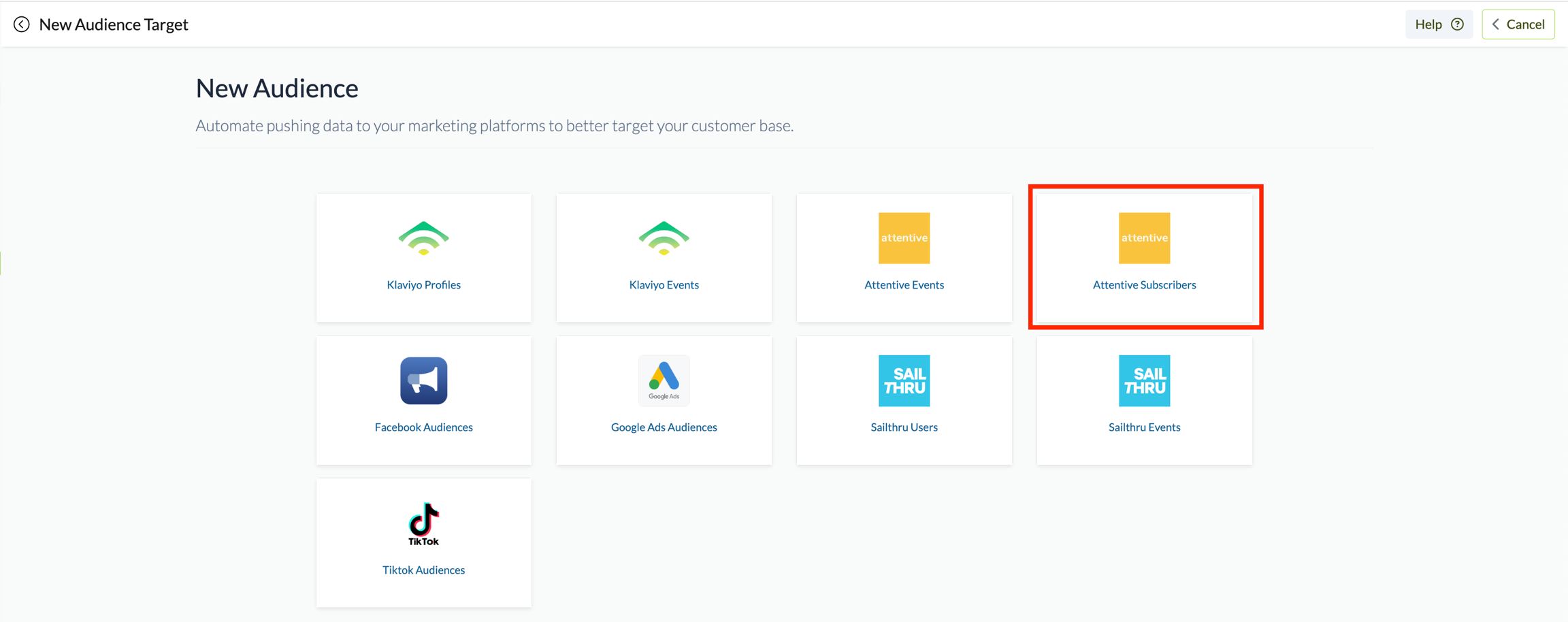 This page provides instructions on how to setup the Attentive Subscribers Target and push data into Attentive using the Attentive Custom Attributes API to build segments in Attentive