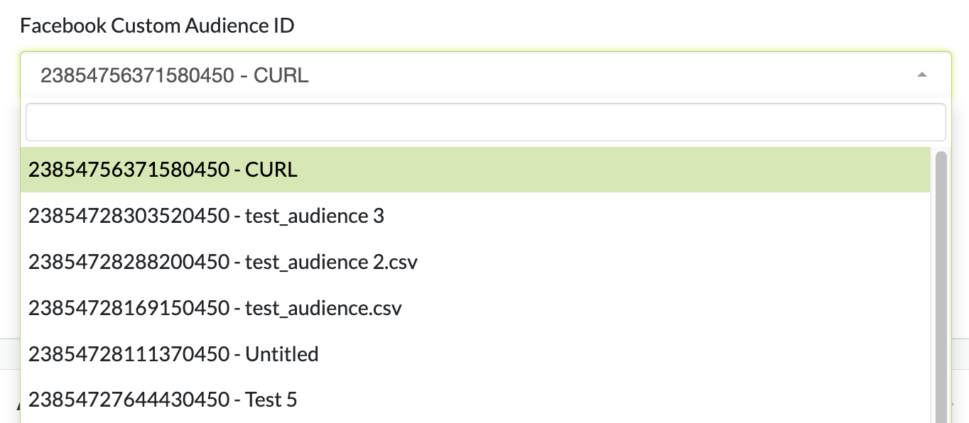 Choose the Audience you want to update in your Facebook Ads account by selecting the correct Custom Audience from the dropdown: