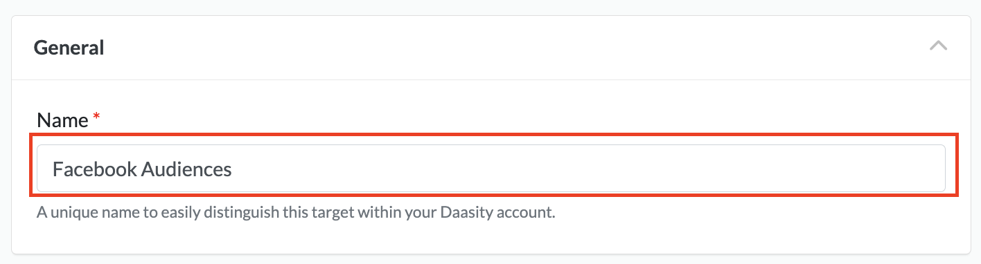 Once all of the above steps have been completed you can finish creating the Facebook Target by clicking on "Save" in the top right: