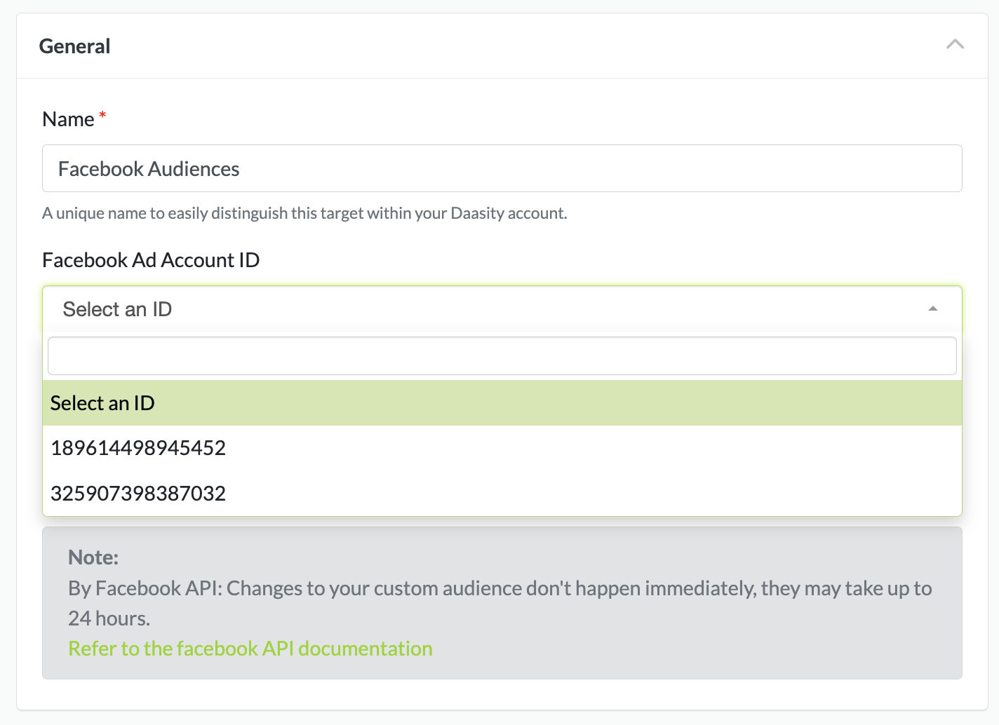 Selecting the Ad Account will determine which Ad account you will be pushing the audience data into