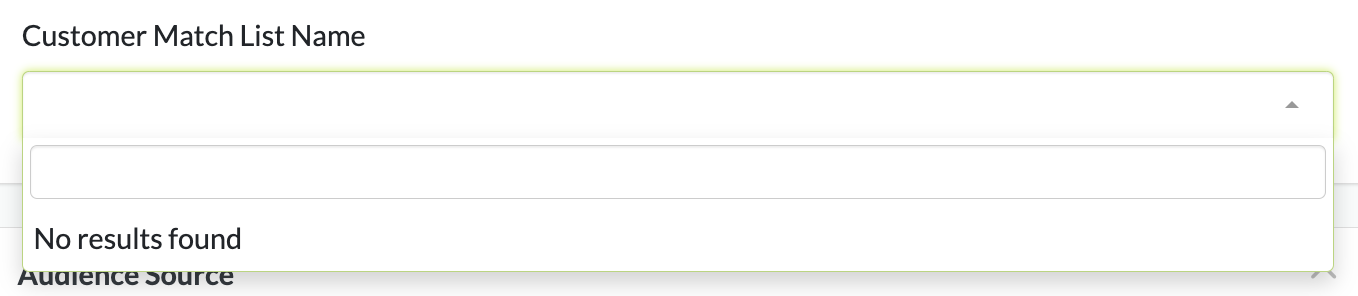 If you don't have any customer lists in your Google Ads account you will see this "No results found"