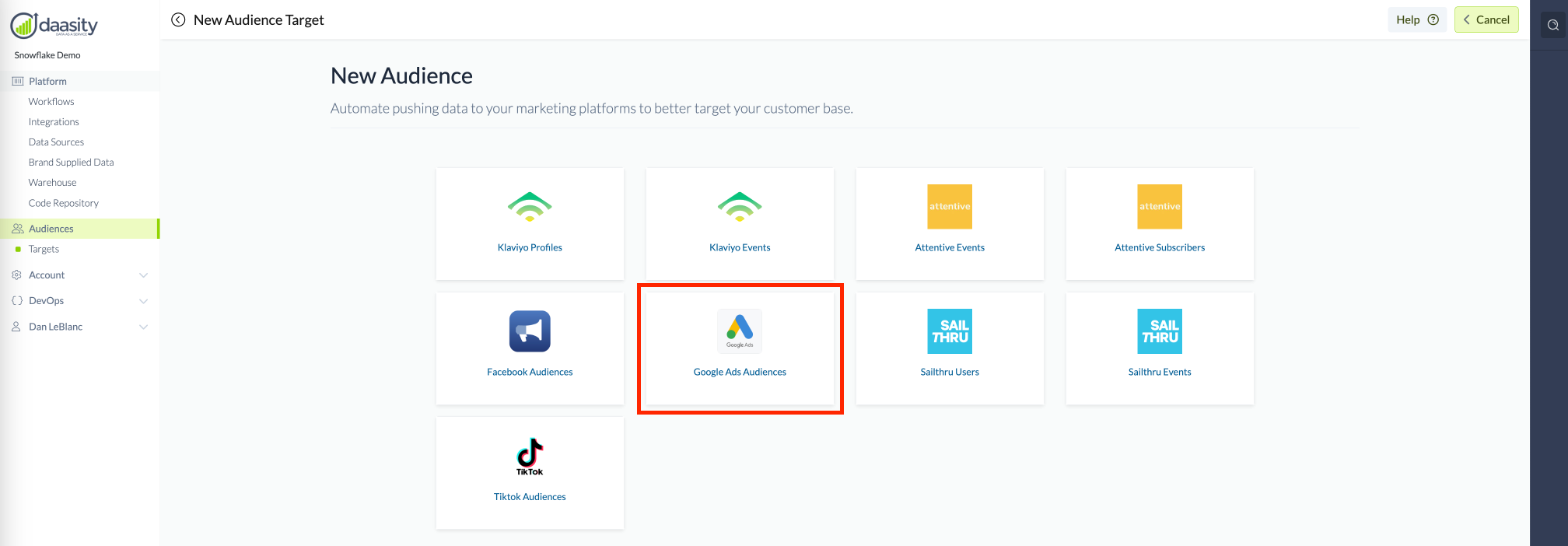 Then select the "Google Ads Audiences"