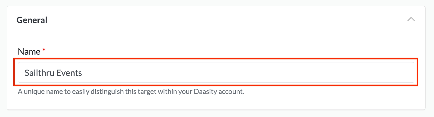 Give your new Target a name so you can find it in the Daasity platform by naming the Target in the red box below