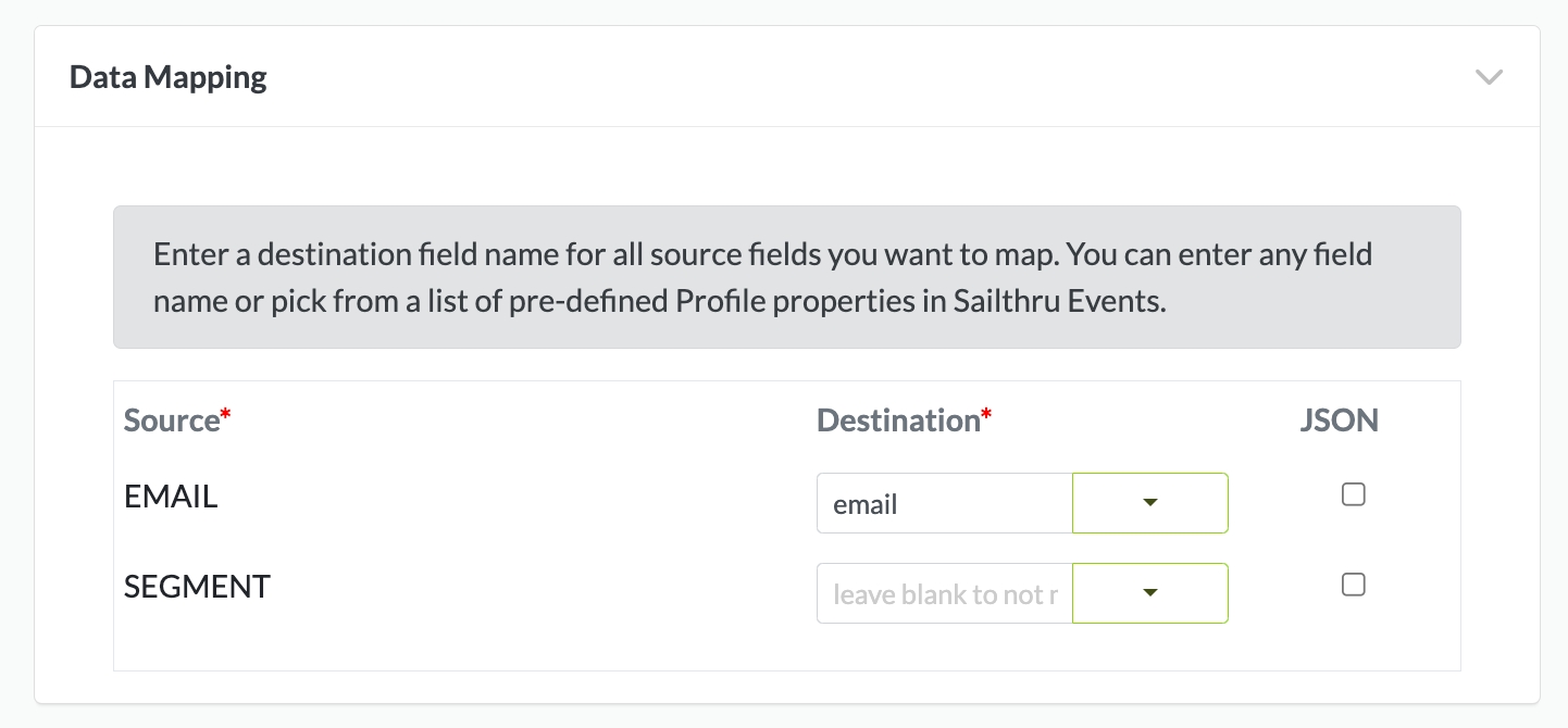 Select and map any additional data fields to push into the Sailthru events (Data Mapping)