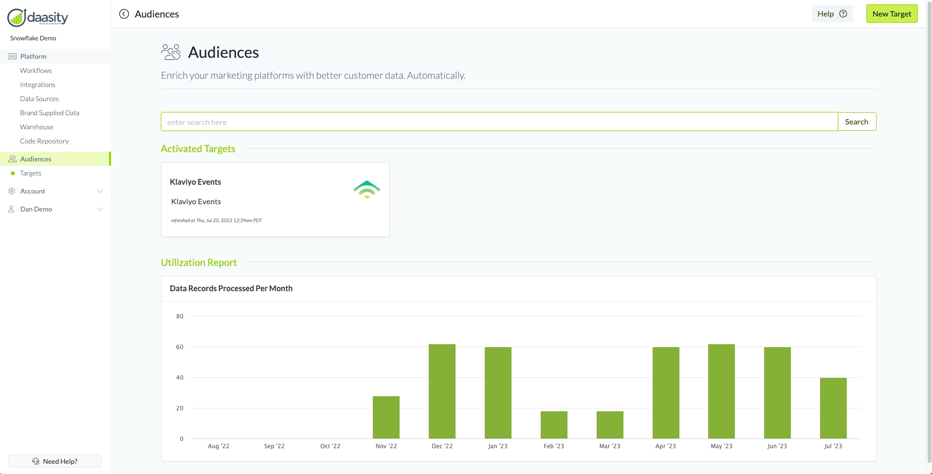 The Utilization report shows you the volume of data that you have processed and pushed into your marketing platforms.