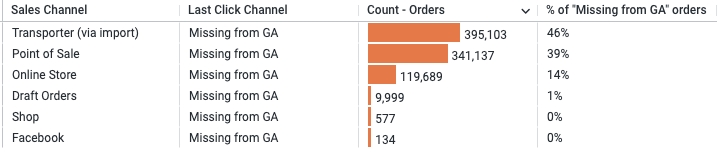 If an order was not tracked in Google Analytics, we will not be able to provide attribution data for it, and all of the GA-based attribution values will be "Missing from GA."