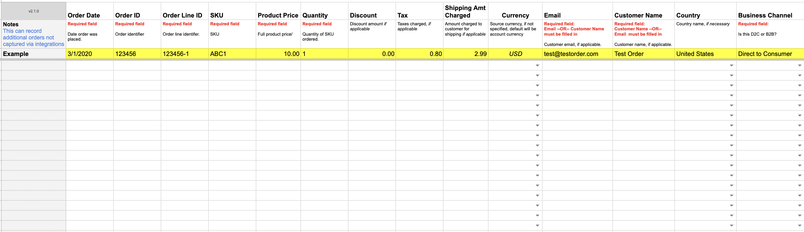 All Required Fields must be Filled out for each line.