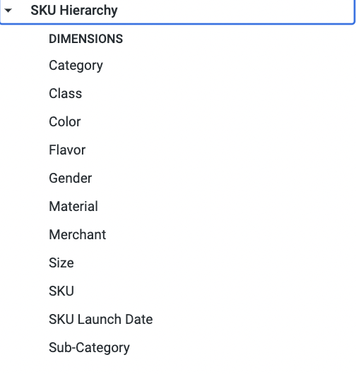 To analyze the data via your Ecommerce store is a tedious manual process. You can input your attributes in the SKU Hierarchy Sheet and build reports in Daasity using this data.&#x20;