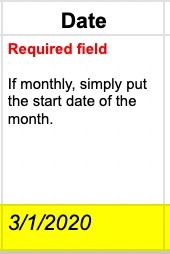 Follow the instructions below for each field. Do NOT add or delete columns. Do Not leave a row incomplete (All required fields must be filled in for a row).