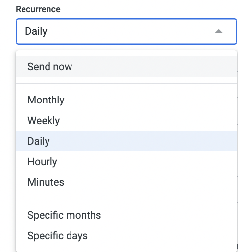 <figure><img src="https://content.gitbook.com/content/amTMWiPne1v1V3L7mbuj/blobs/Zrd26tCNbZ7oRoD8E46k/Screen%20Shot%202023-11-27%20at%203.49.43%20PM.png" alt=""><figcaption><p>Choose When To Send The Dashboard</p></figcaption></figure>