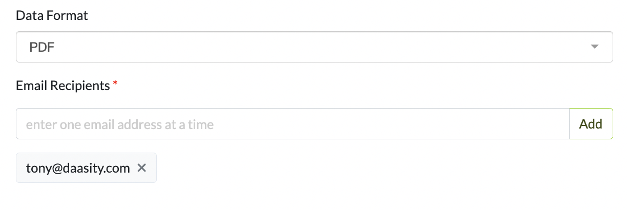 <figure><img src="https://content.gitbook.com/content/amTMWiPne1v1V3L7mbuj/blobs/bM4rSiiWoqcuFiyO45Rb/data%20format%20and%20email%20receipennts.png" alt=""><figcaption><p>Enter Format and Email Addresses</p></figcaption></figure>