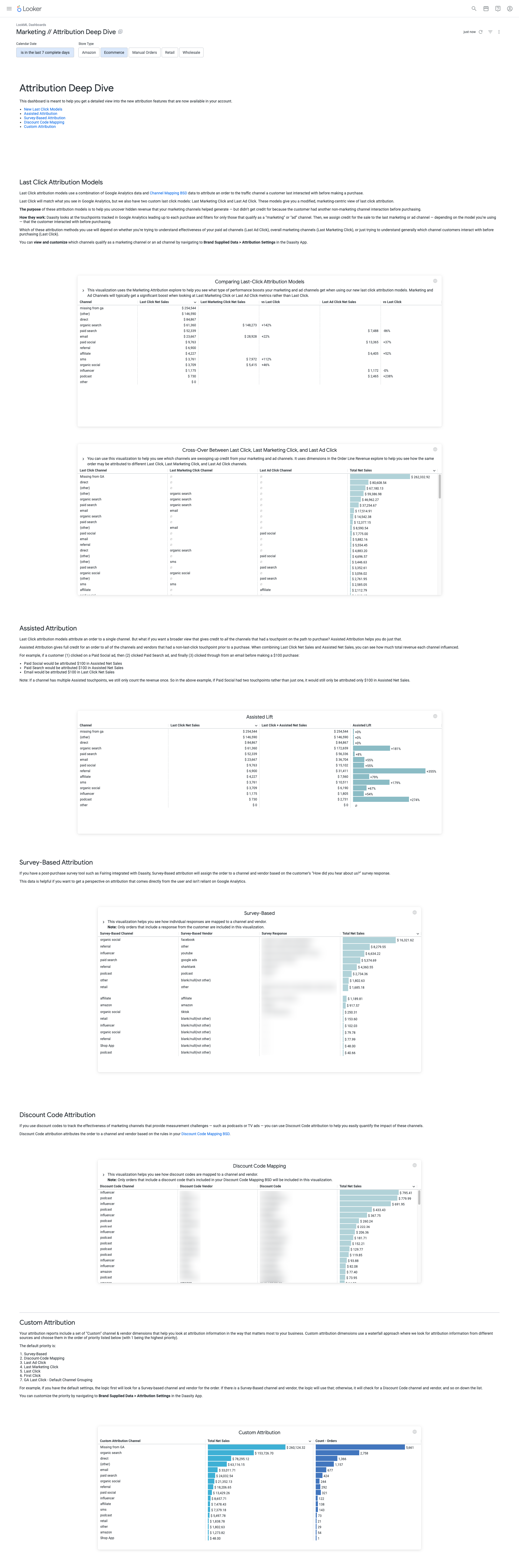All of the visualizations in this dashboard use the Marketing Attribution explore, which contains data from the following sources:
