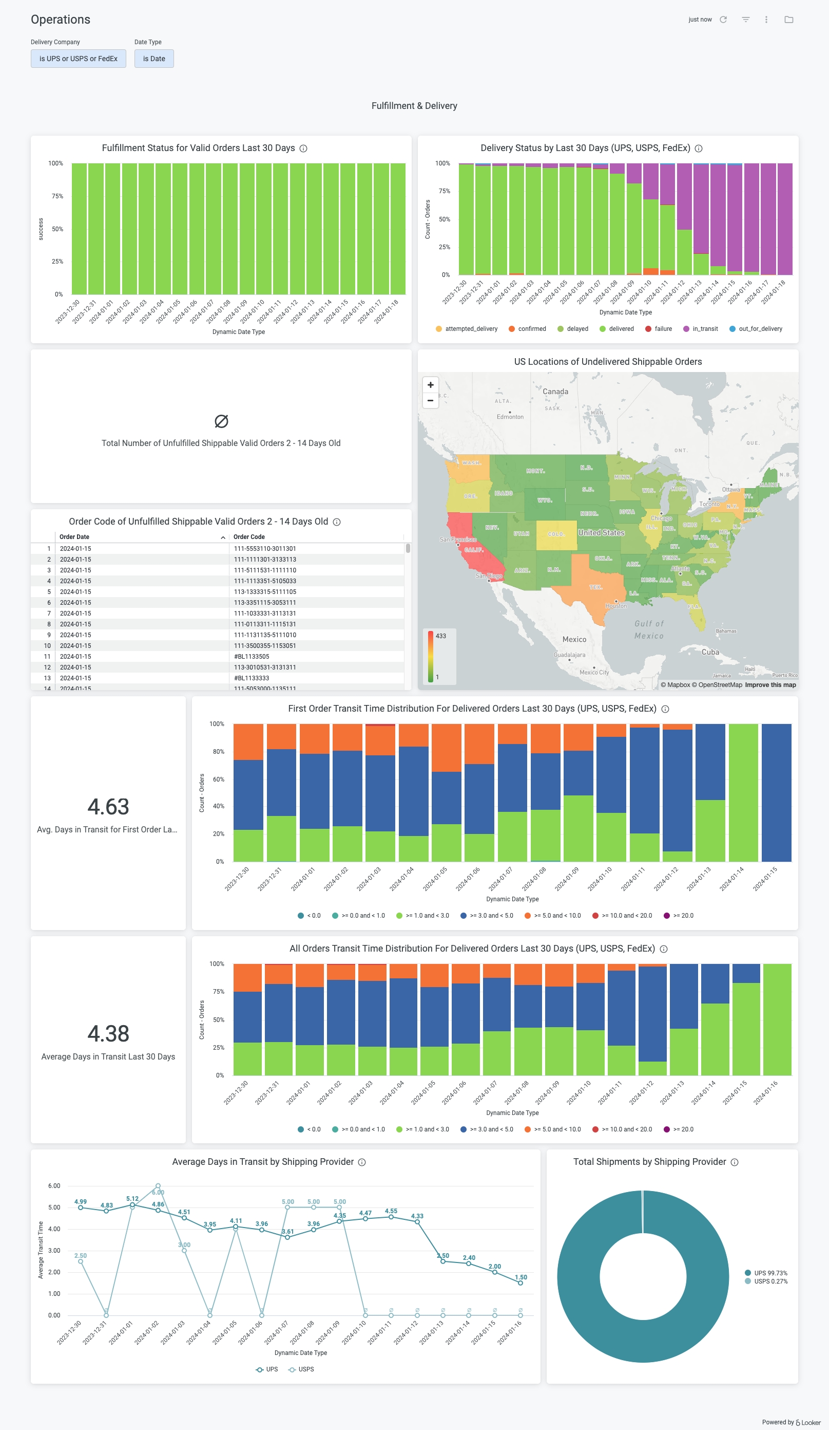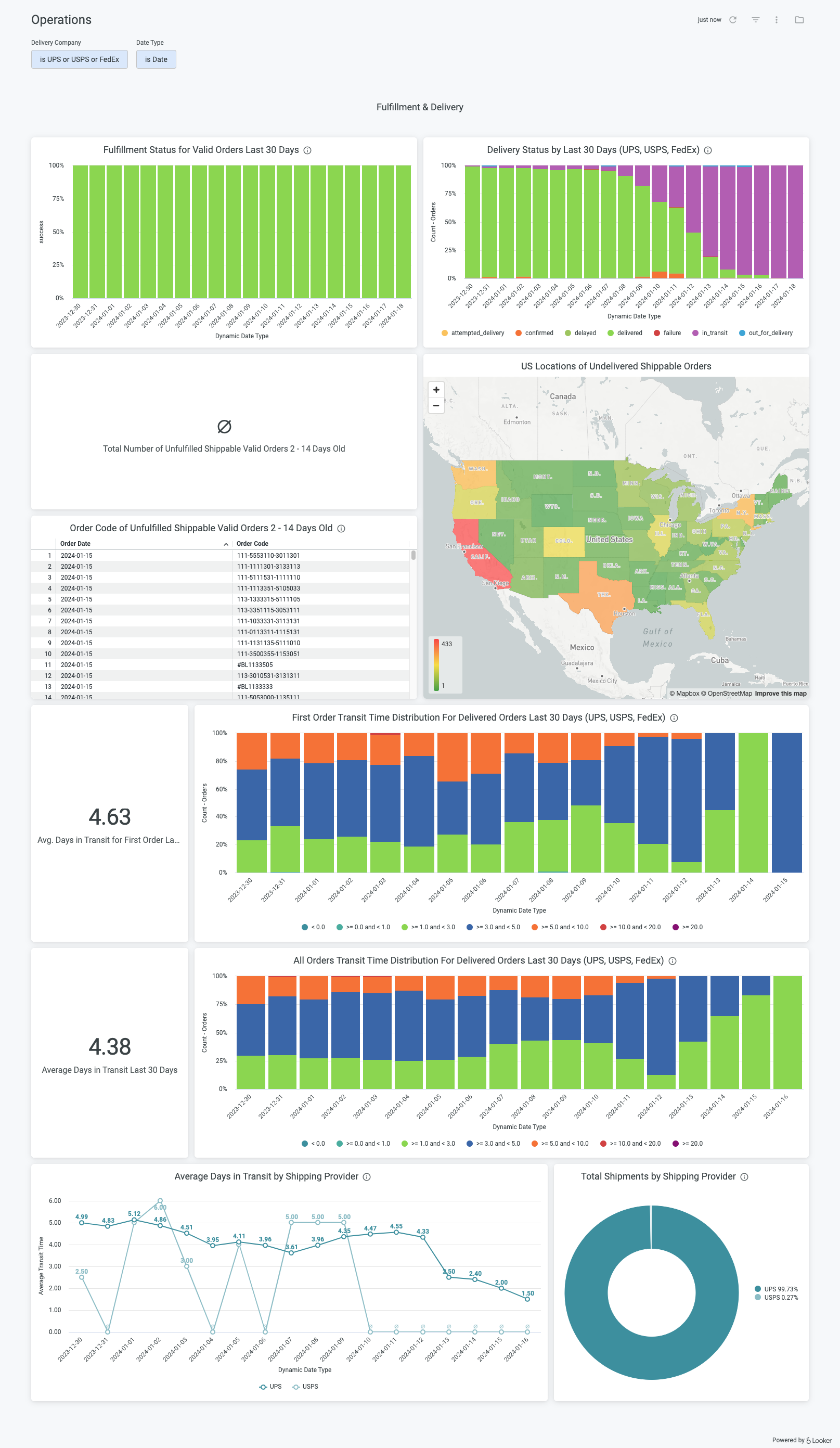 The Operations dashboard gives you detailed analysis of fulfillment and delivery metrics. Customer experience and “the last mile” is critical to how your customers feel about your brand and poor experiences will impact repurchase rates and lifetime value.