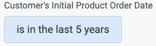 This means the dashboard is only showing repurchase data if the customer's initial purchase of the product was in the past 5 years.
