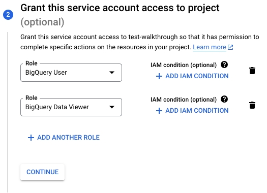 Once you have a BigQuery Datasource set up, you will use it to grant access for one or more BigQuery Database integrations, which is where the data extraction will actually happen.