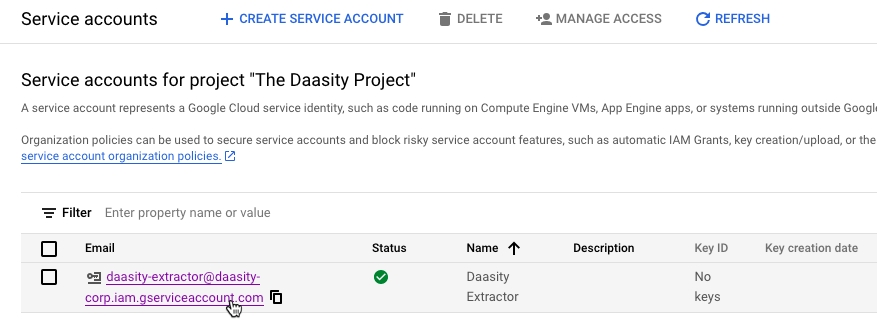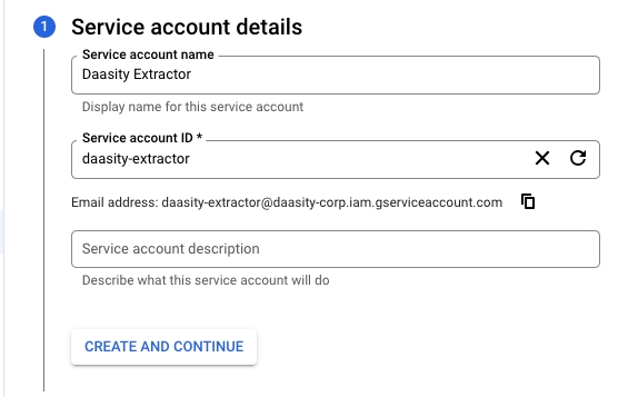 The BigQuery Datasource integration isn't technically an integration — it's a utility that will be used by other integrations. It establishes credentials that will be used to access a BigQuery project that contains data you want to extract into Daasity.
