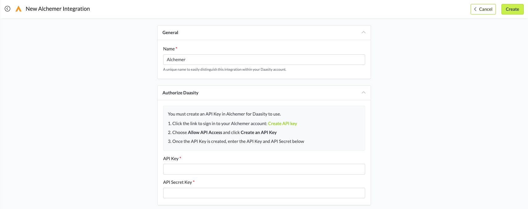 You should get an API Key via the Alchemer UI or their support team prior to following these steps. Here are instructions from Alchemer on how to create an API Key