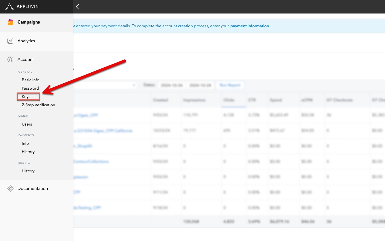 1. Log into AppLovin using your master user account — NOT a sub-user account.