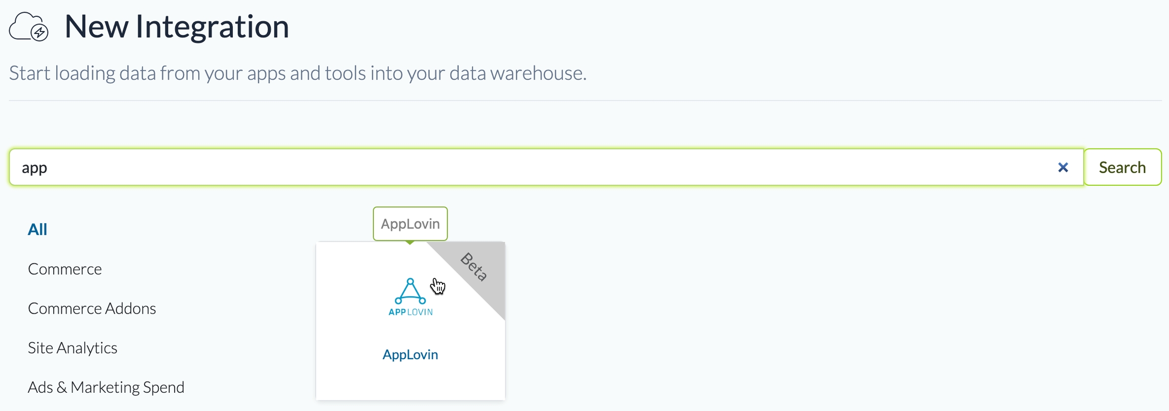 In the Daasity app, click Integrations in the left-hand menu, and then the New Integration button in the upper-right corner.