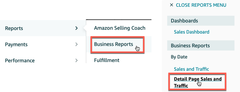 Product (Except for the Product Detail Page Performance, which uses the Sales and Traffic Business Report)