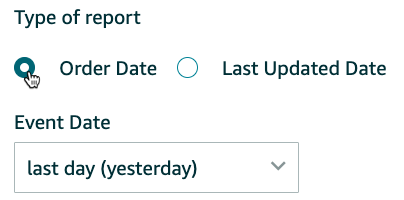 Don't use the Last Updated Date option. If you're trying to compare data for orders placed in January 2024, for example, and you choose the Last Updated date option, that file could contain orders that were placed prior to January 2024. Additionally, if an order placed in January 2024 was updated in a later month, that order would not show up in that report download.