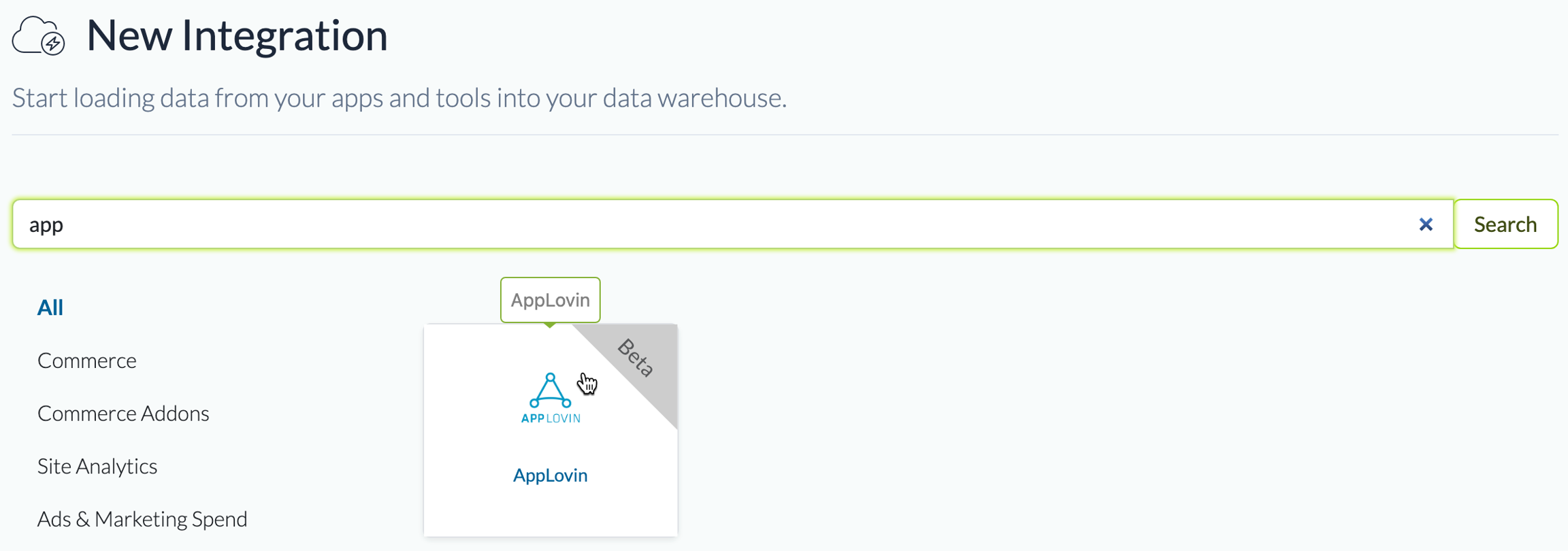 Step 1: Navigate to 'New Integration' screen
