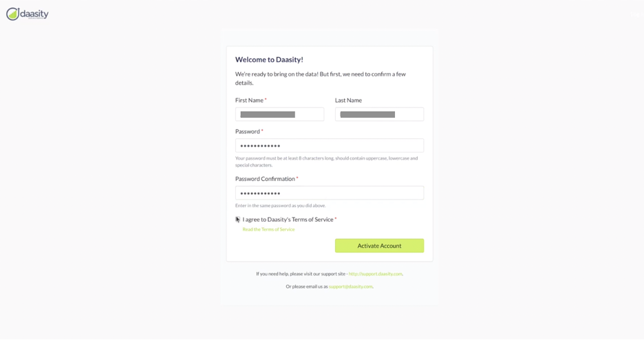Step 3: Activate Your Daasity Account