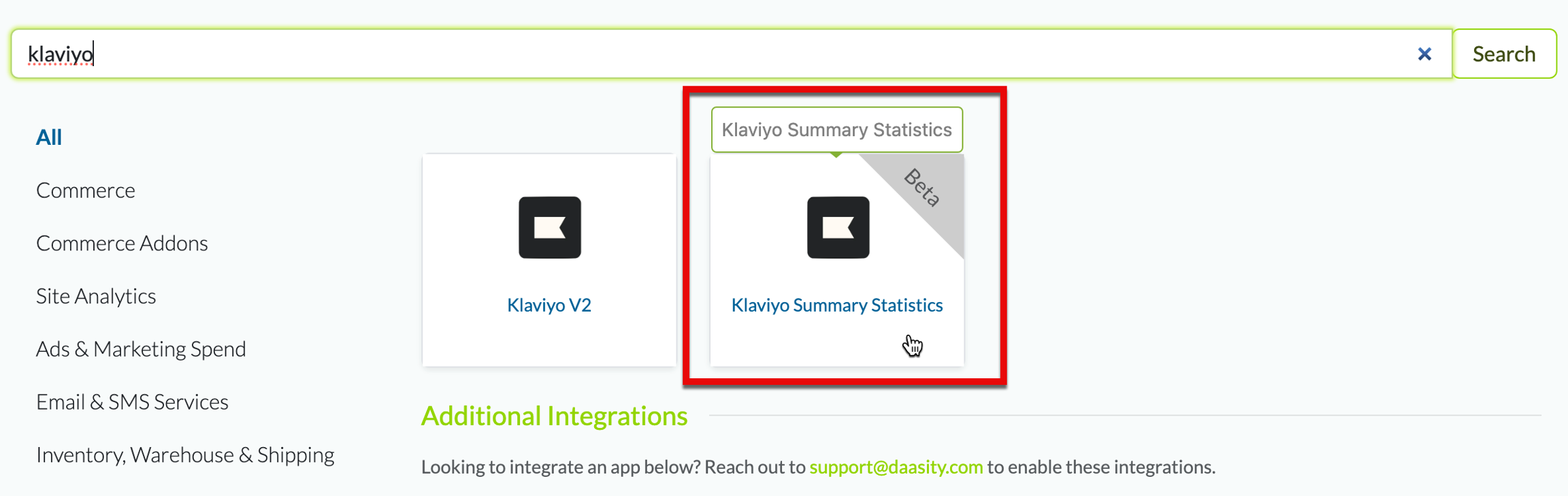 Step 2: Choose the Klaviyo Summary Statistics integration