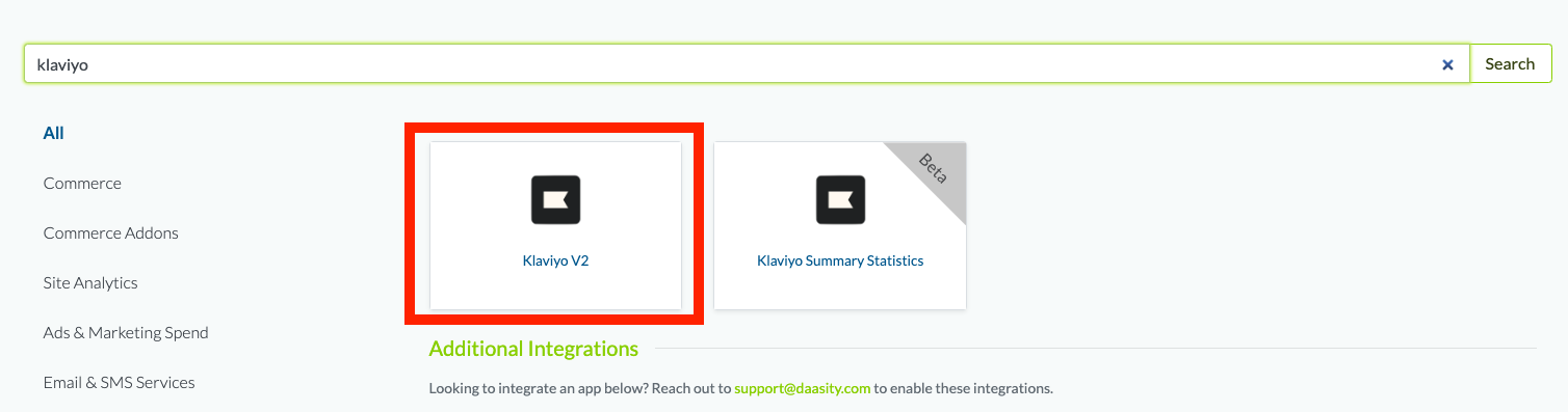 Step 2: Choose the Klaviyo V2 integration