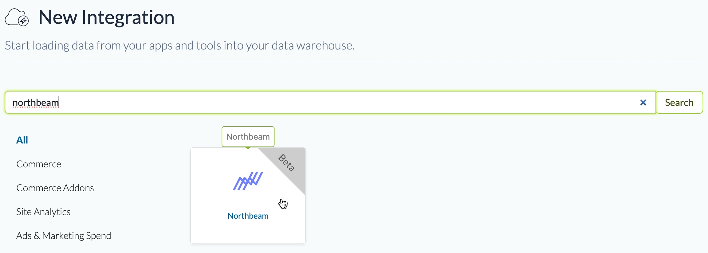 In the search box, type "northbeam" and choose the Northbeam integration.