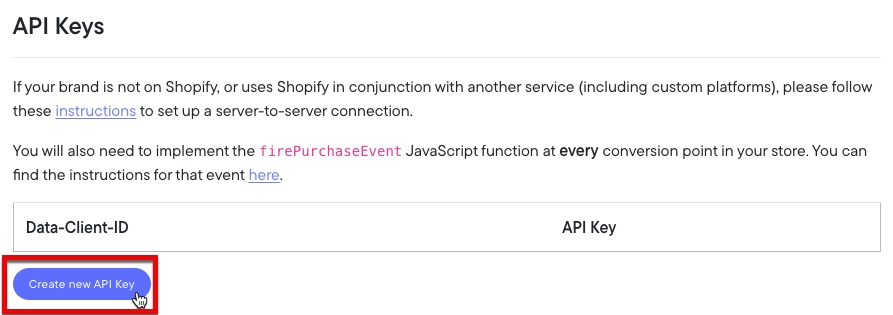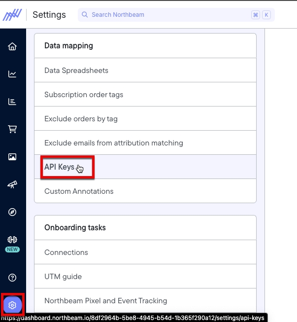 In the Northbeam admin, navigate to Settings > Data Mapping > API Keys:
