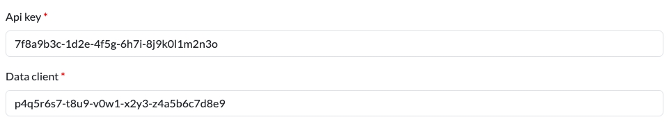 Copy the Data-Client-ID and API Key values from the API Key you just generated and add them to the Daasity App:
