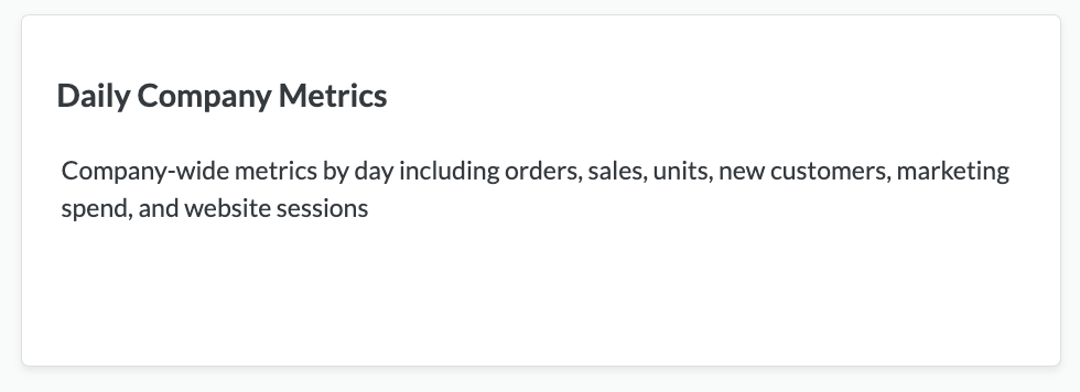 <figure><img src="https://content.gitbook.com/content/amTMWiPne1v1V3L7mbuj/blobs/lFv1Fn3yfsIW4ugsdvYd/Screen%20Shot%202023-10-11%20at%2010.43.54%20AM.png" alt=""><figcaption><p>Daily Company Metrics Explore</p></figcaption></figure>