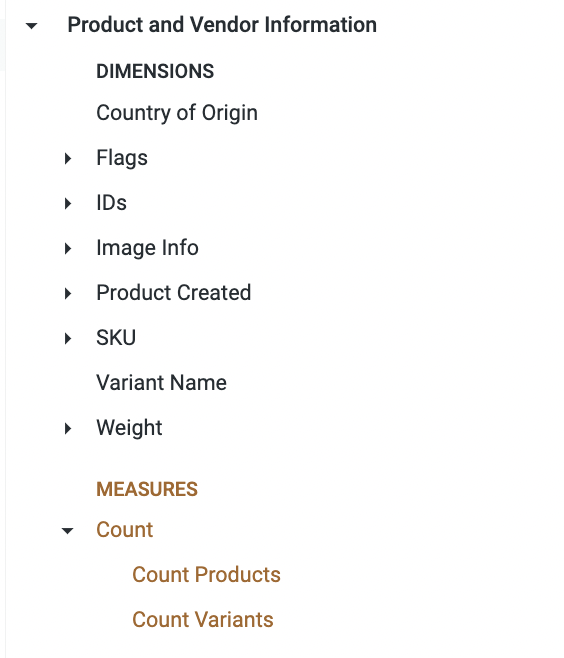 <figure><img src="https://content.gitbook.com/content/amTMWiPne1v1V3L7mbuj/blobs/5wSkSXMhYEdq8nnoNaay/Screen%20Shot%202023-10-06%20at%2012.04.42%20PM.png" alt=""><figcaption><p>Key Dimensions and Measures</p></figcaption></figure>