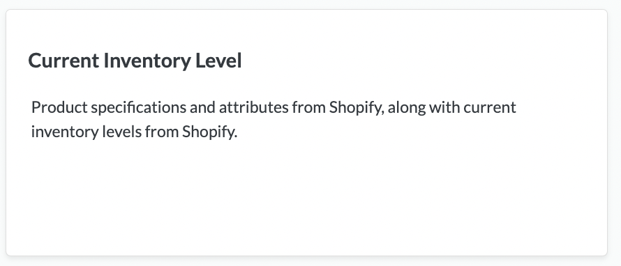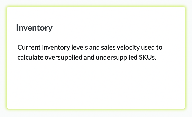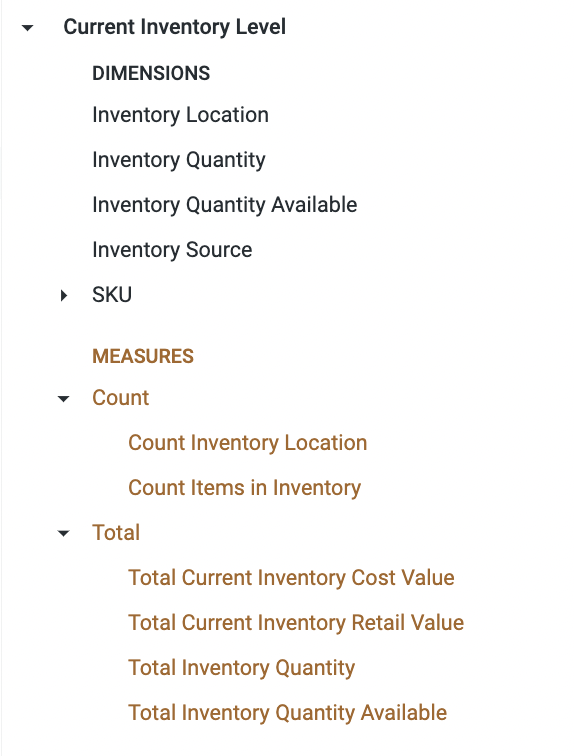Monitor current inventory levels with comprehensive product, vendor, and order data for inventory analysis and management, **formerly known as Current Inventory Level**. Build custom reports to track stock levels, analyze product performance, and optimize inventory decisions across your ecommerce operations.