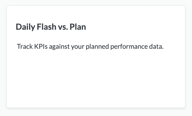 ## The [Daily Flash vs. Plan Dashboard](https://help.daasity.com/core-concepts/data-models/data-explores/digital-analytics-unified/broken-reference) is an Out-of-Box Standard Daasity Dashboard built using the Daily Plan to Actual Explore