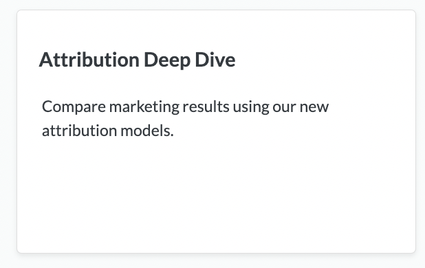 ## The [Attribution Deep Dive Dashboard](https://help.daasity.com/core-concepts/dashboards/report-library/acquisition-marketing/attribution-deep-dive) is an Out-of-Box Standard Daasity Dashboard built using the Marketing Attribution Explore