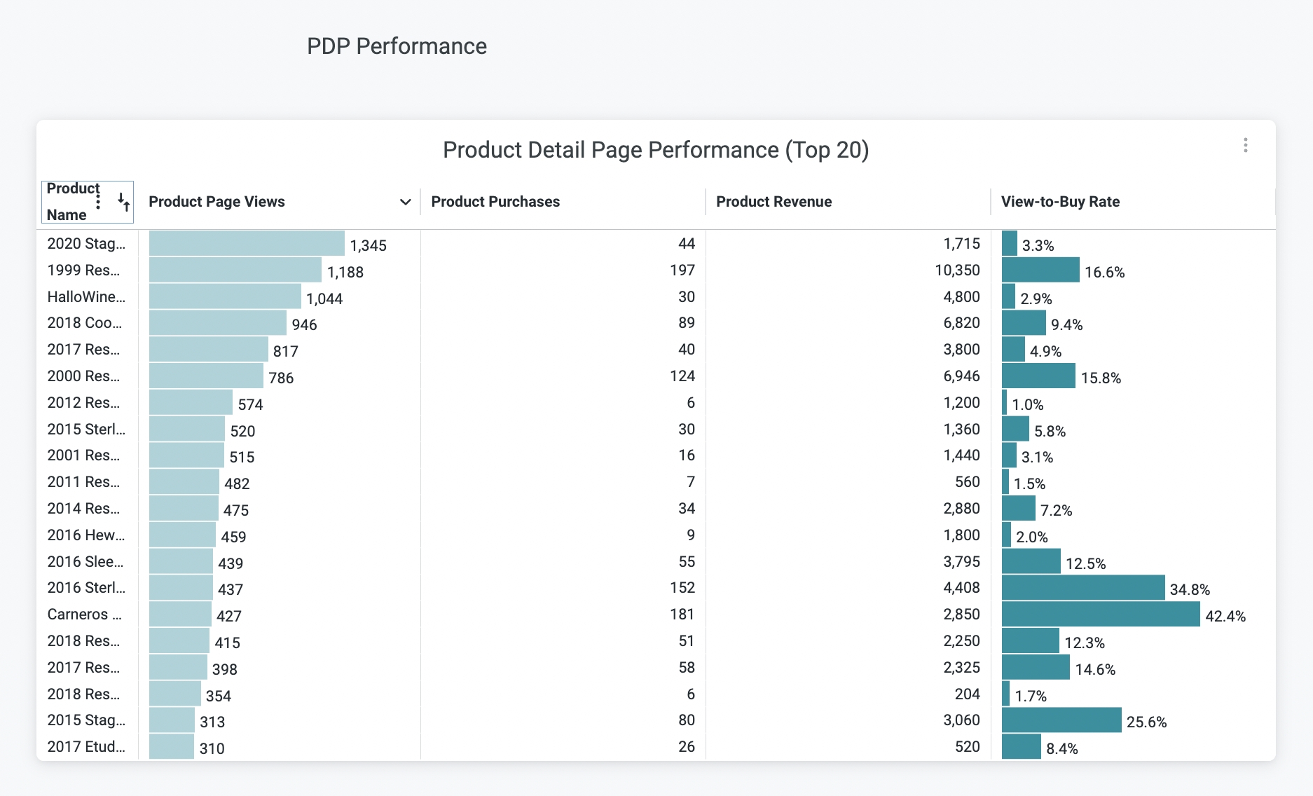 The PDP Performance Report in the Standard Out-of-Box Daasity Product Dashboard is built using The Product Page Explore