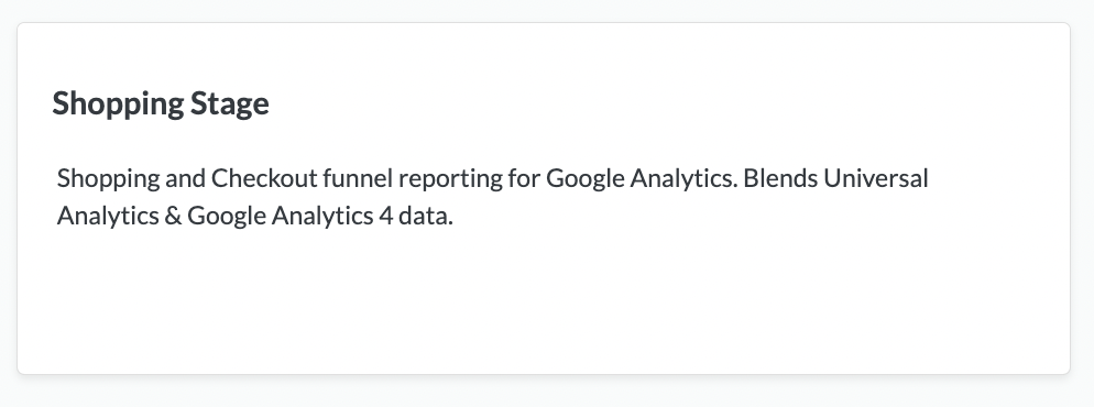 Analyze shopping and checkout funnel performance with comprehensive data from Google Analytics and GA4, **formerly known as Shopping Stage**. Track user progression through your ecommerce funnel and identify conversion bottlenecks across device types for new and returning customers.