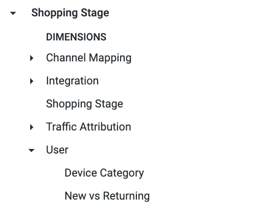 <figure><img src="https://content.gitbook.com/content/amTMWiPne1v1V3L7mbuj/blobs/5lvU3LvS3fuKnHHpds4i/Screen%20Shot%202023-10-23%20at%204.20.16%20PM.png" alt=""><figcaption><p>Example Report Built Using Shopping Stage Explore</p></figcaption></figure>