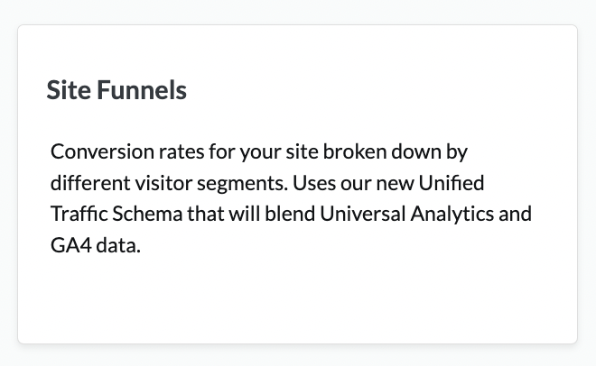 <figure><img src="https://content.gitbook.com/content/amTMWiPne1v1V3L7mbuj/blobs/wlxMAXc0N4H5kzt4ua0m/Screen%20Shot%202023-10-23%20at%204.24.17%20PM.png" alt=""><figcaption><p>Site Funnels Dashboard</p></figcaption></figure>