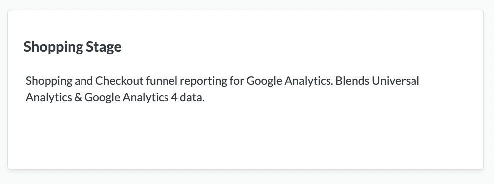 Contains Shopping and Checkout Funnel data for Google Analytics and G4