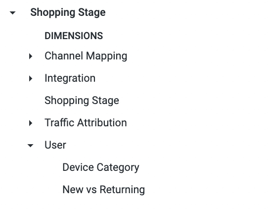 Analyze shopping and checkout funnel performance with comprehensive data from Google Analytics and GA4, formerly known as Shopping Stage. Track user progression through your ecommerce funnel and identify conversion bottlenecks across device types for new and returning customers.