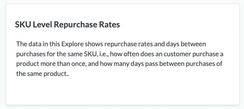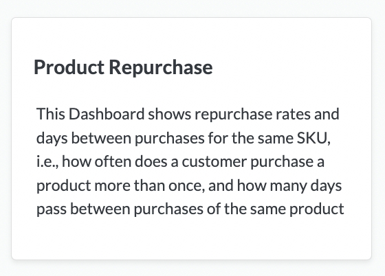 The Product Repurchase Rate Dashboard is a Standard Out-of-Box Daasity Dashboard Built Using the SKU Level Repurchase Rates Explore