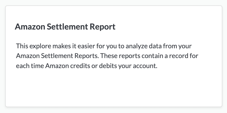 The Amazon Settlement Explore is available if you have Integrated your Amazon Seller Central store with Daasity.